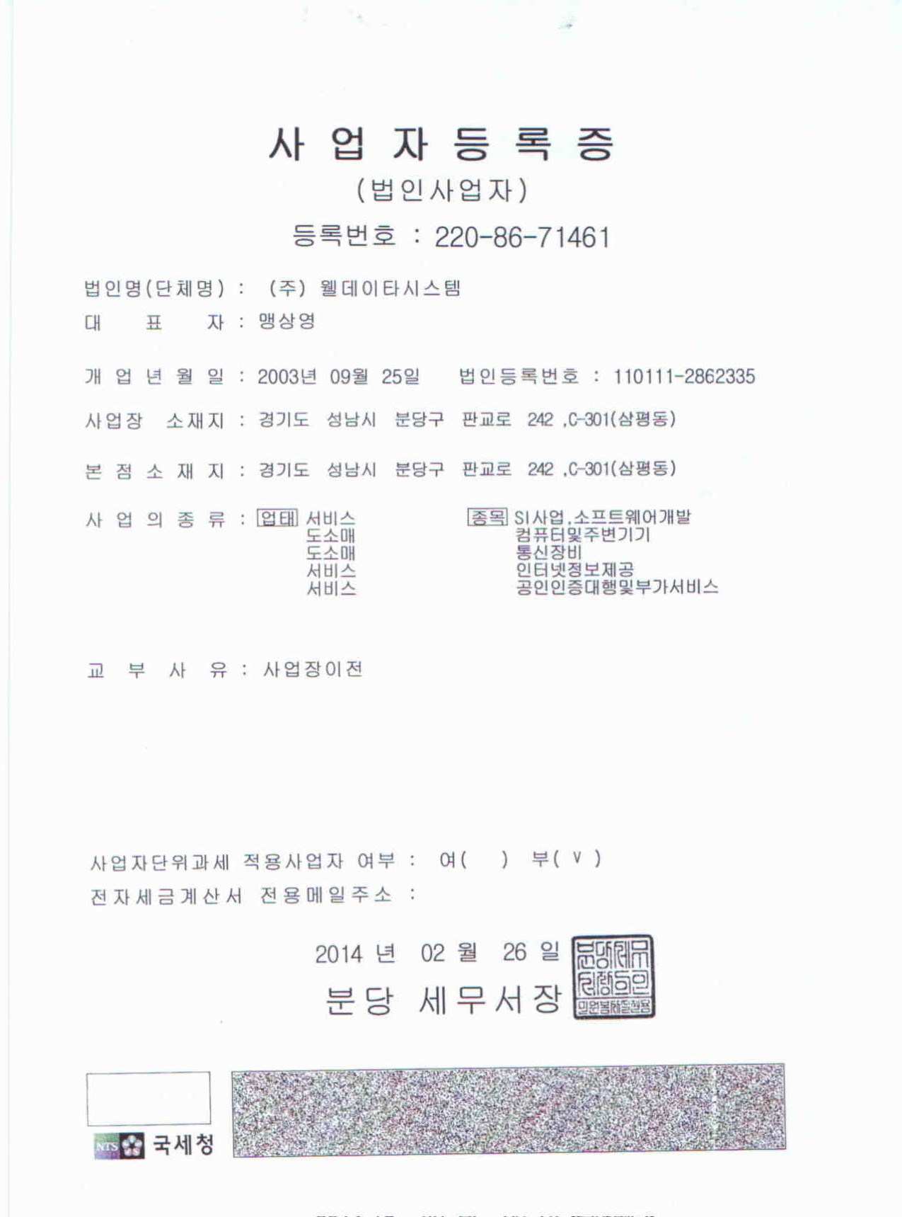 (ÁÖ)À£µ¥ÀÌŸ½Ã½ºÅÛ »ç¾÷ÀÚµî·ÏÁõ